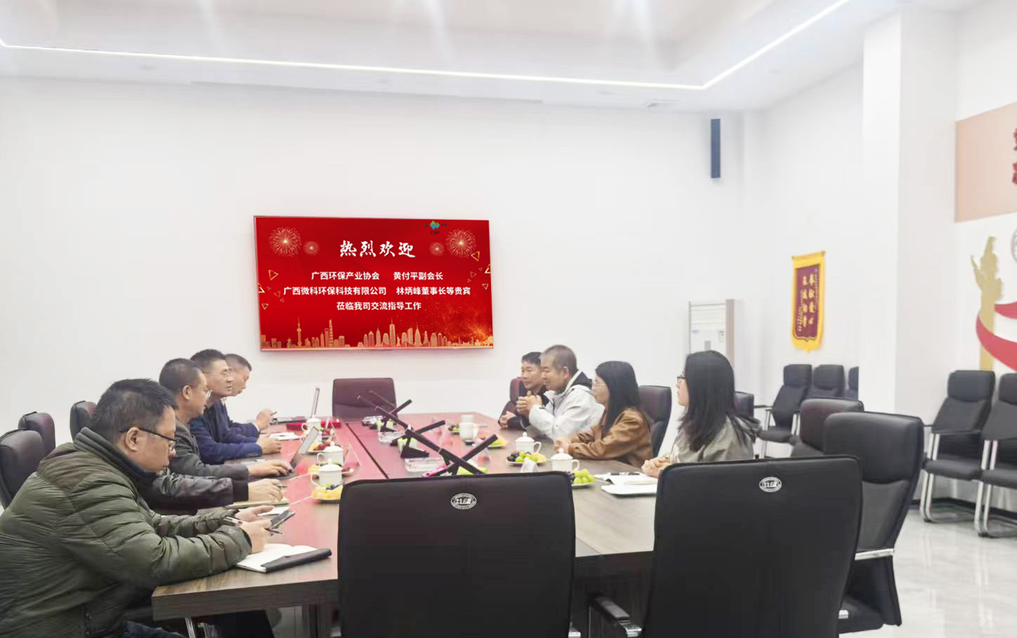 ?? ? ?2025年12月8日廣西環(huán)保產(chǎn)業(yè)協(xié)會(huì)黃付平副會(huì)長(zhǎng)、廣西微科環(huán)保科技有限公司林炳峰董事長(zhǎng)等貴賓一行,專(zhuān)程蒞臨浙江川寧環(huán)??萍加邢薰窘涣髦笇?dǎo)。? ? ? ?